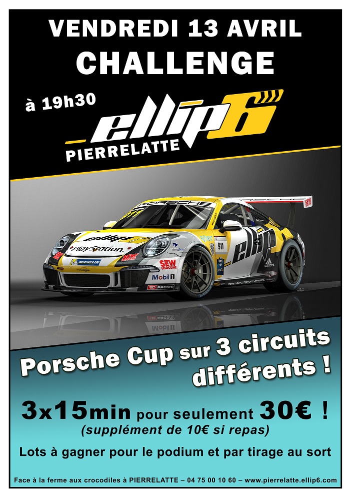 Vendredi 13 à 19h = challenge Porsche Cup sur 3 circuits différents