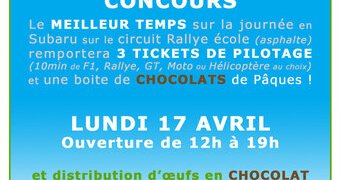 Dimanche 16 avril concours : le meilleurs temps de la journée remportera 3 tickets de pilotage au choix et une boite de chocolats