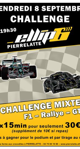 Vendredi 08 septembre à 19h : Challenge mixte F1, Rallye, GT