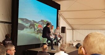 Un immense chapiteau équipé d’un écran géant a accueilli tous les participants qui ont pu assister à une interview de Sébastien et Daniel qui revivaient leur course et partageaient des anecdotes.